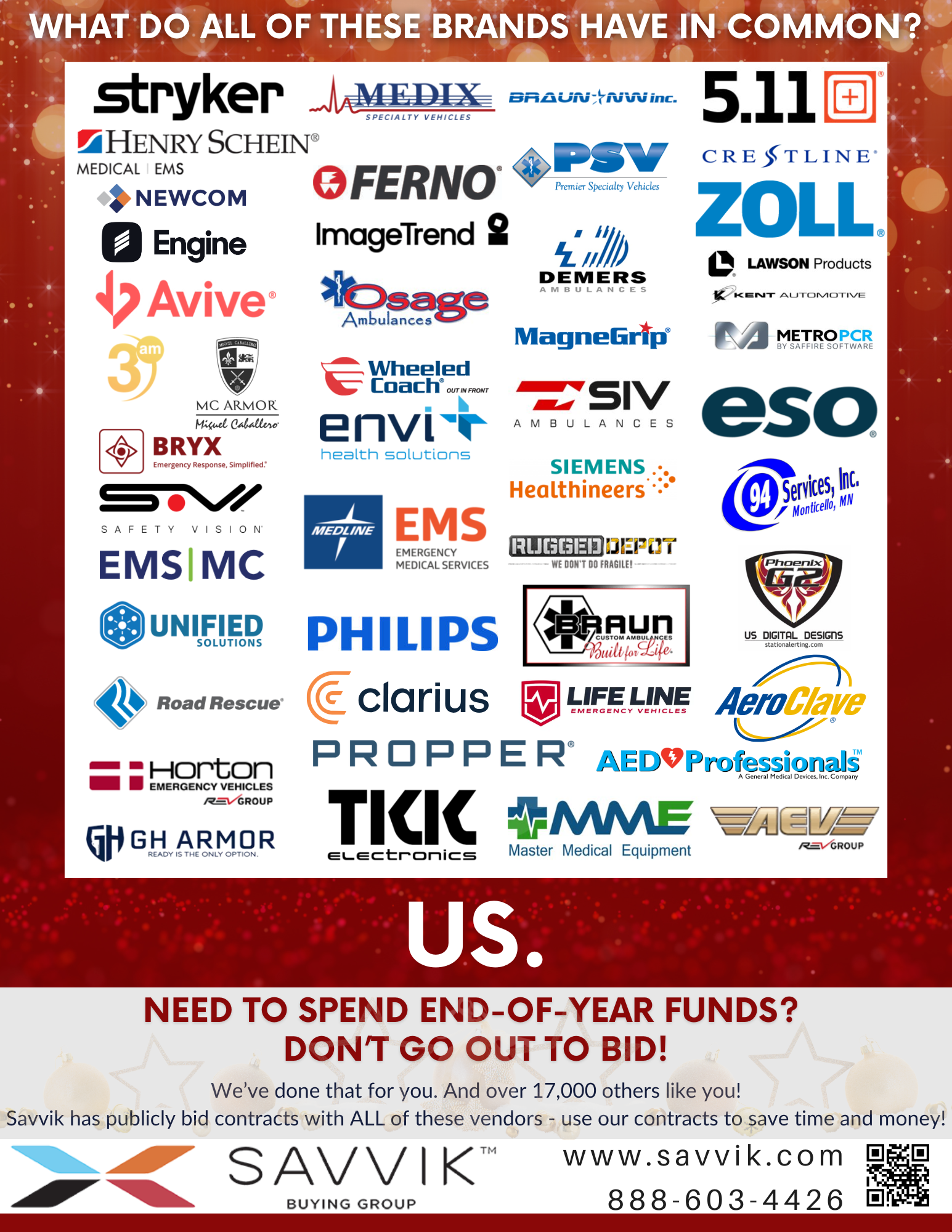 As a non-profit, Savvik not only supports the industry with grants to help projects like Community Paramedicine and Benchmarking, but they share a portion of their process with the members who purchase from them. So, every time that you are using a Savvik contract that helps save you time and money, you are supporting EMSAC as well. It is a real win, win for all involved.
